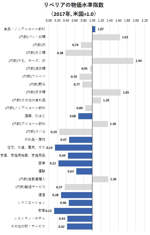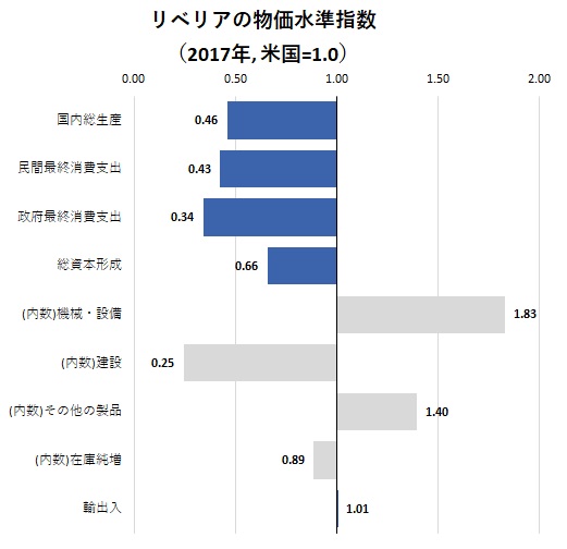 総資本形成の内訳では、国内で機械・設備の投資財の製造が難しいことから輸入に頼るケースが多く、その結果非常に高い物価水準となる一方で、建設については国内労働者の低賃金を反映して安い物価水準となっています。