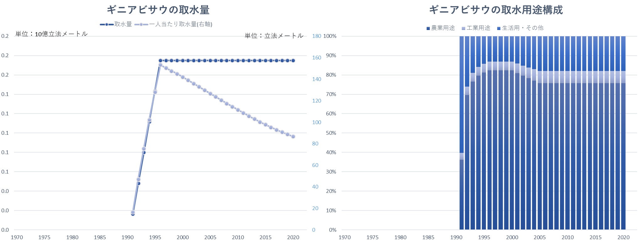 以下は、ギニアビサウの取水量とその構成の推移とを表しています。